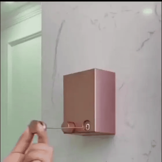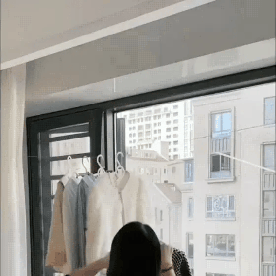 Paso 2 – Ajusta la tensión: Extiende la cuerda hasta que quede firme y bien tensada para soportar la ropa.